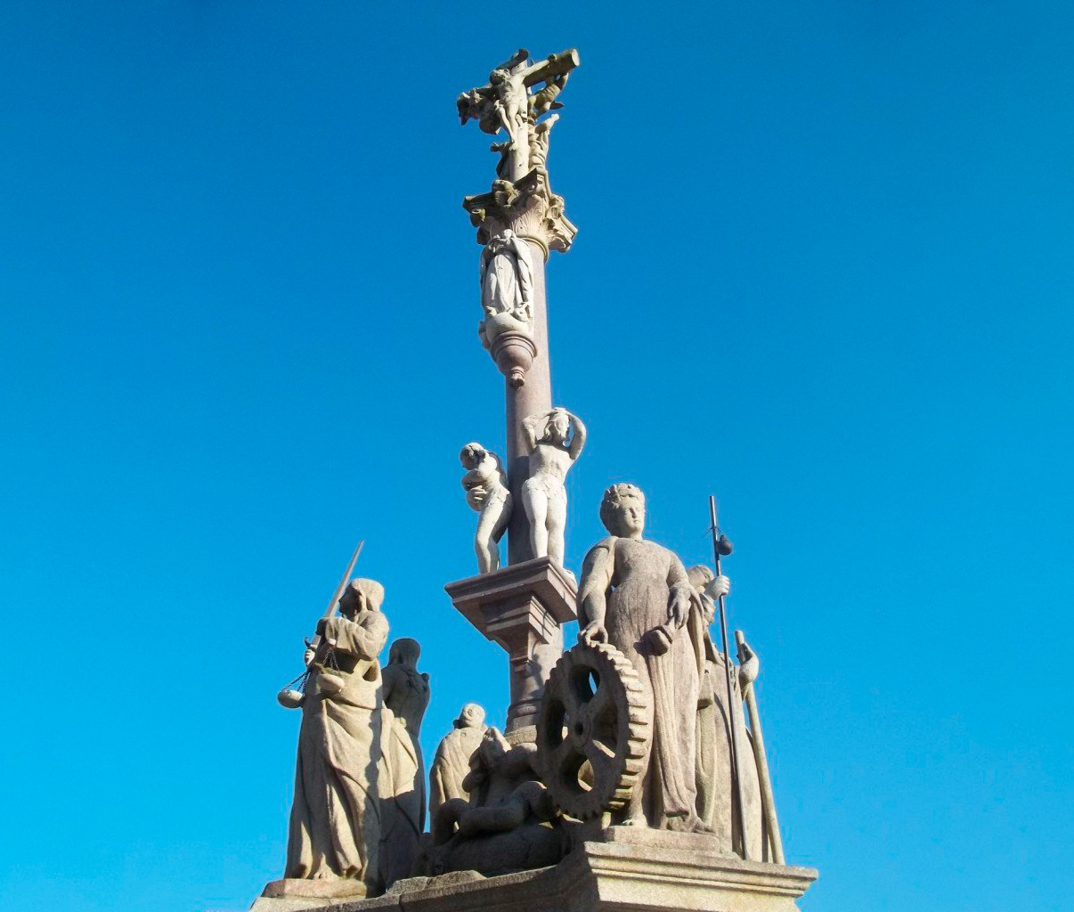 Cruceiros nos que na parte máis alta e no seu anverso atópase o Cristo crucificado, mentres que a Virxe María ocupa o reverso. Nalgunhas ocasións outros santos son os protagonistas.